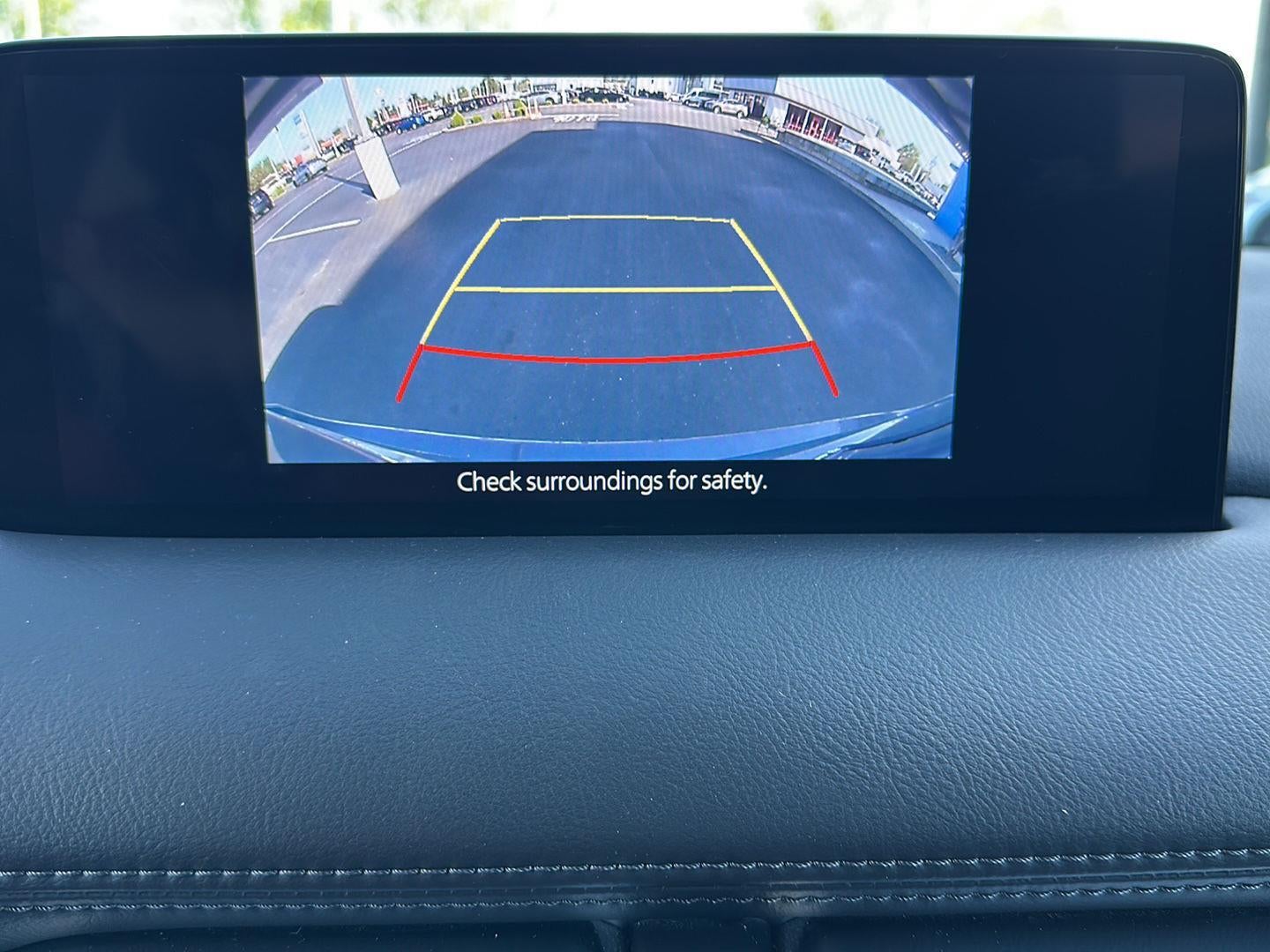- The vehicle is equipped with a camera that displays an image of the area behind the vehicle on an interior display.