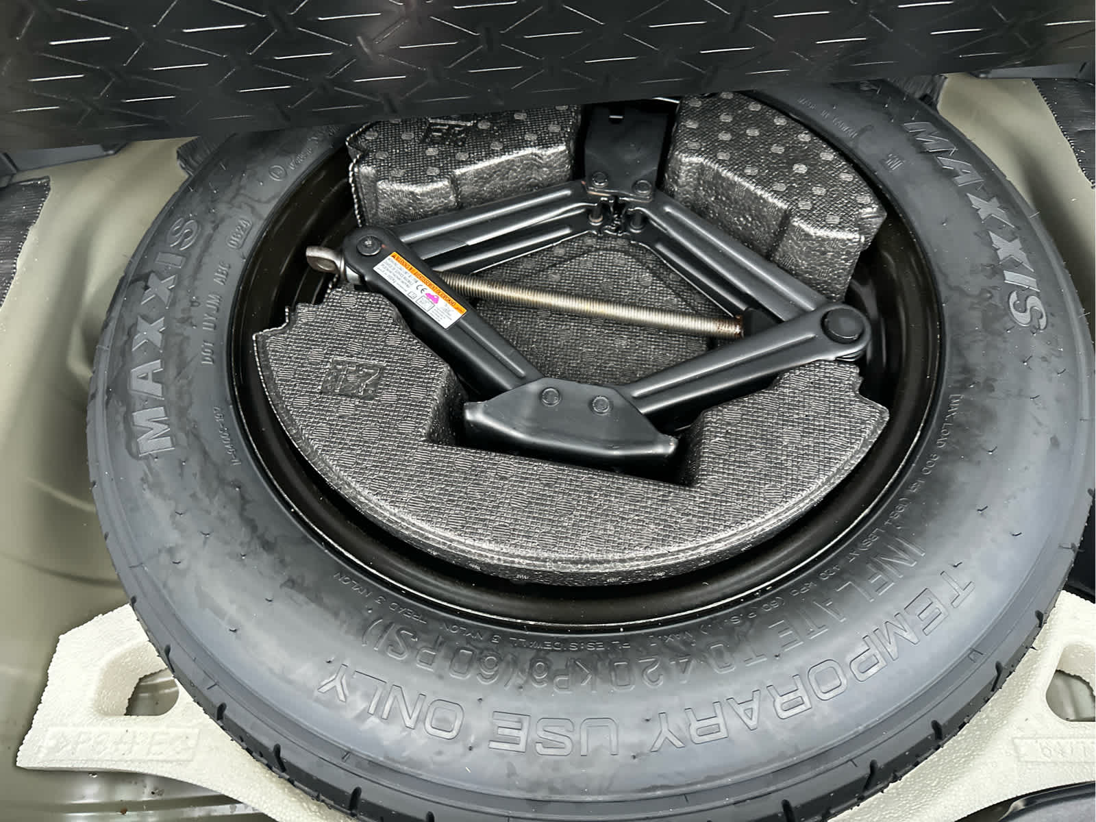 - Compact Spare Tire Mounted Inside Under Cargo